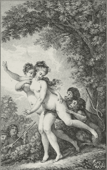En la post-Voltera sencoŝovo de baiser/embrasser («kisi → fiki» + «brakumi → kisi») Lanti’ ankoraŭ retenas la malnovan sencon de la unua: «baiser = kisi», sed ja ŝovas la duan: «on embrassa la vieille → oni {kisis brakumis} la maljunulinon» (ĉap. 29ª).